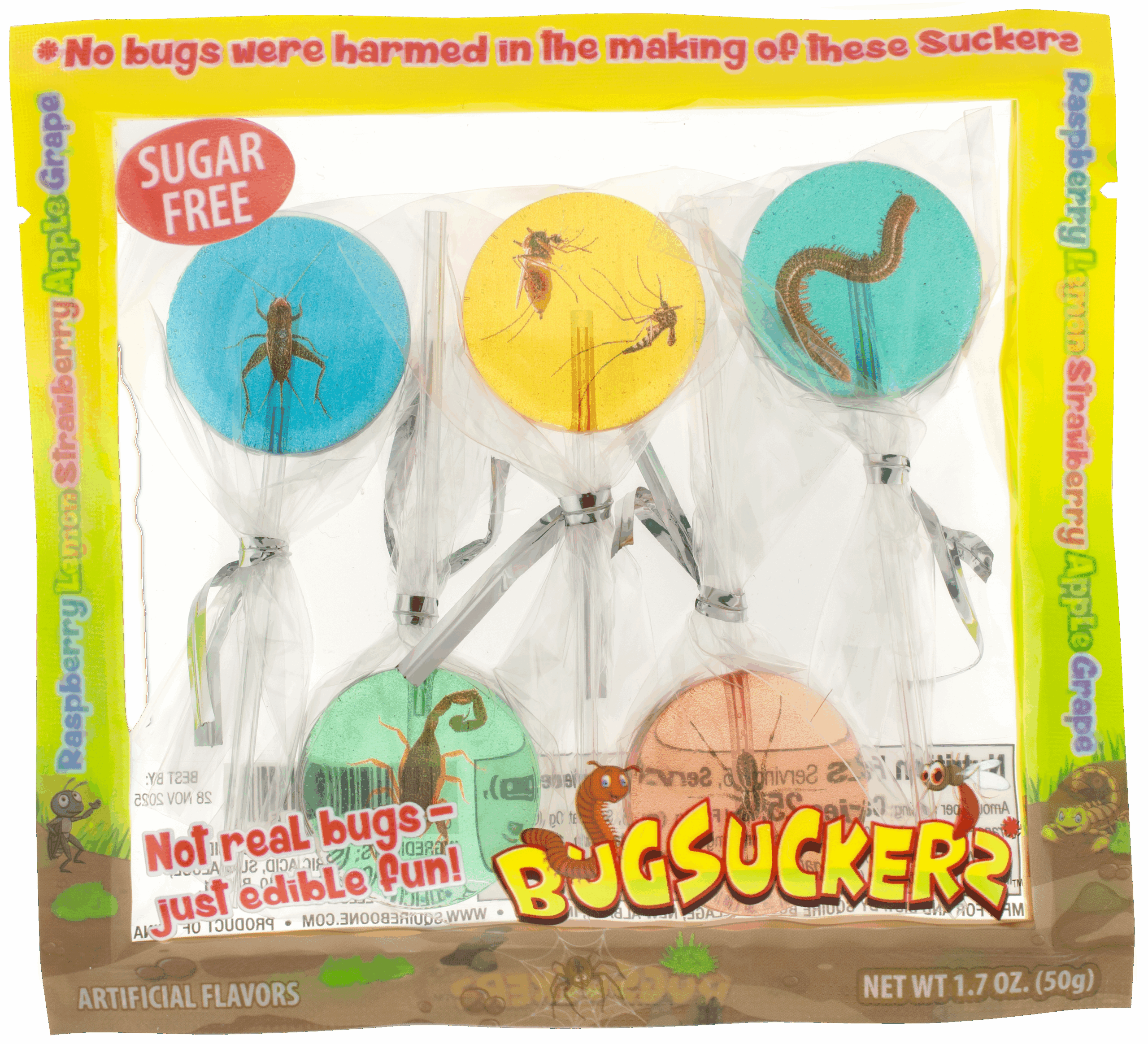 Shock your friends when they think you’re eating real bugs! Clear, isomalt, sugar-free pops magnify the edible image of real bugs inside the pops making them look 3-D.
