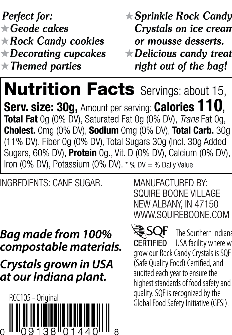 - One Pound of Rock Candy Crystals packaged in a resealable bag