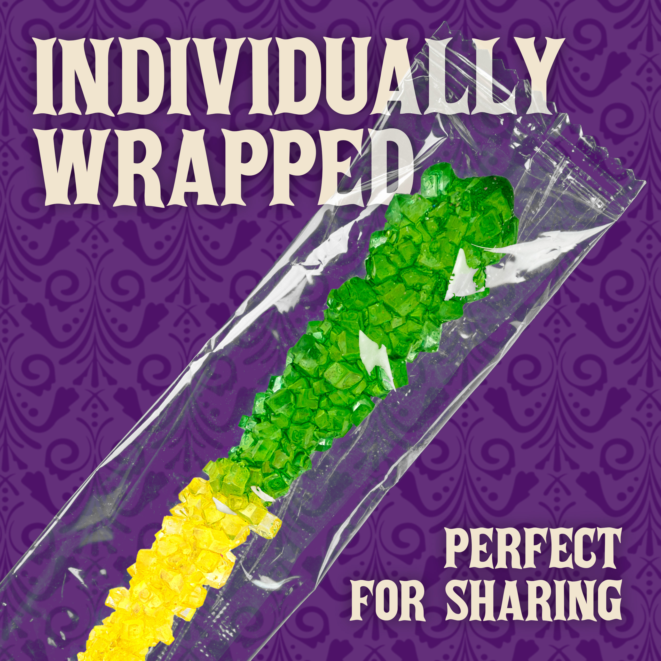 Perfect for candy buffets and color coordinating decorations at parties and wedding receptions; brilliant-colored crystals show through clear wrappers for color decorating.
