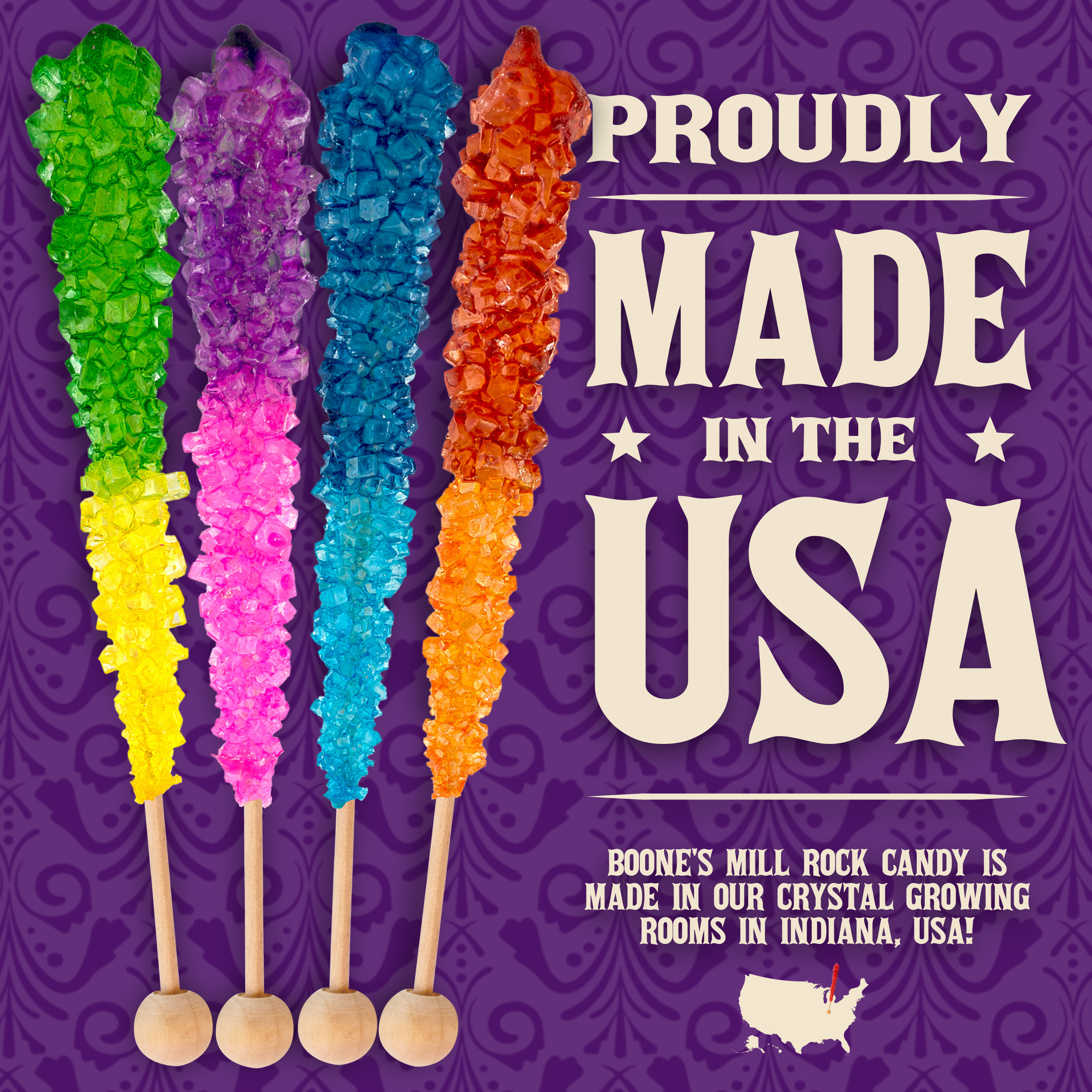 Rocksicles may seem out of this world, but we grow our sugar crystals, with all ingredients made in the USA, right here at home in Indiana!